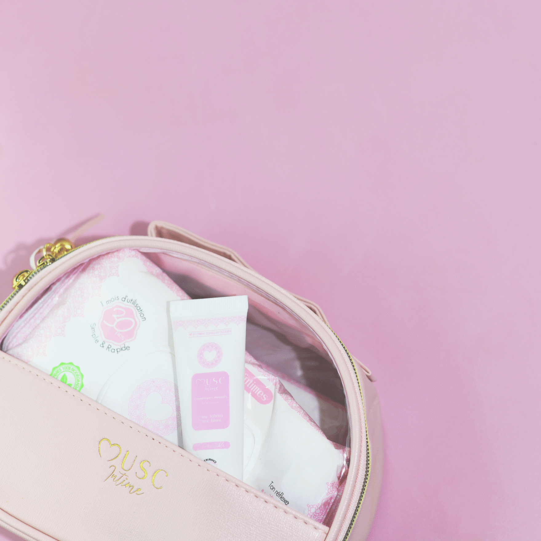 Musc Intime a créé sa propre trousse pour permettre à toutes ses beautés musquées de se démarquer et d’avoir une trousse ultra glamour réservée à ce qui ne se voit pas, mais qui est la chose la plus importante : les produits d'hygiène intime.